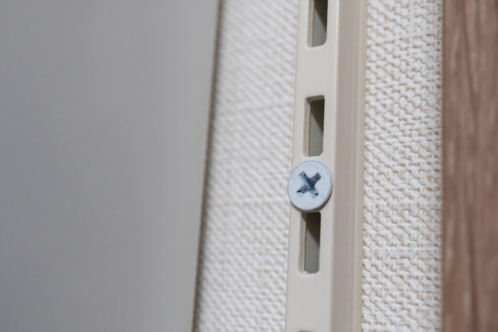 南海プライウッドのこの商品の場合、まずは上の方に1つだけネジを打つことができる。