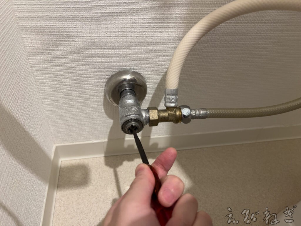 (我が家のようにネジが二重に切られている場合は、内側を回して水を止める。)