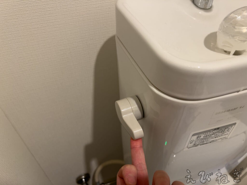 ここで、タンク内上部にある赤いつまみの向きを確認しておく。