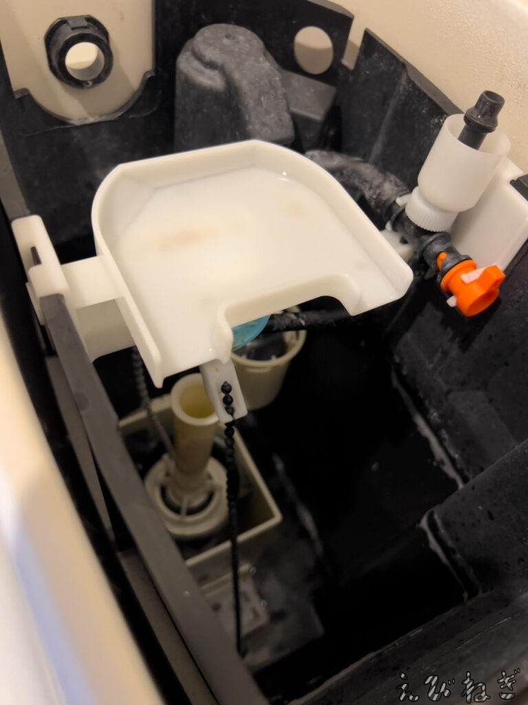 そのため、上フタを外しているときに万が一水が流れてしまうと、タンクが満水になるまで水が止まらないが、上向きに水が吹き出るので全然タンクがたまらない→水が全然止まらないという大災害が発生するので超注意。