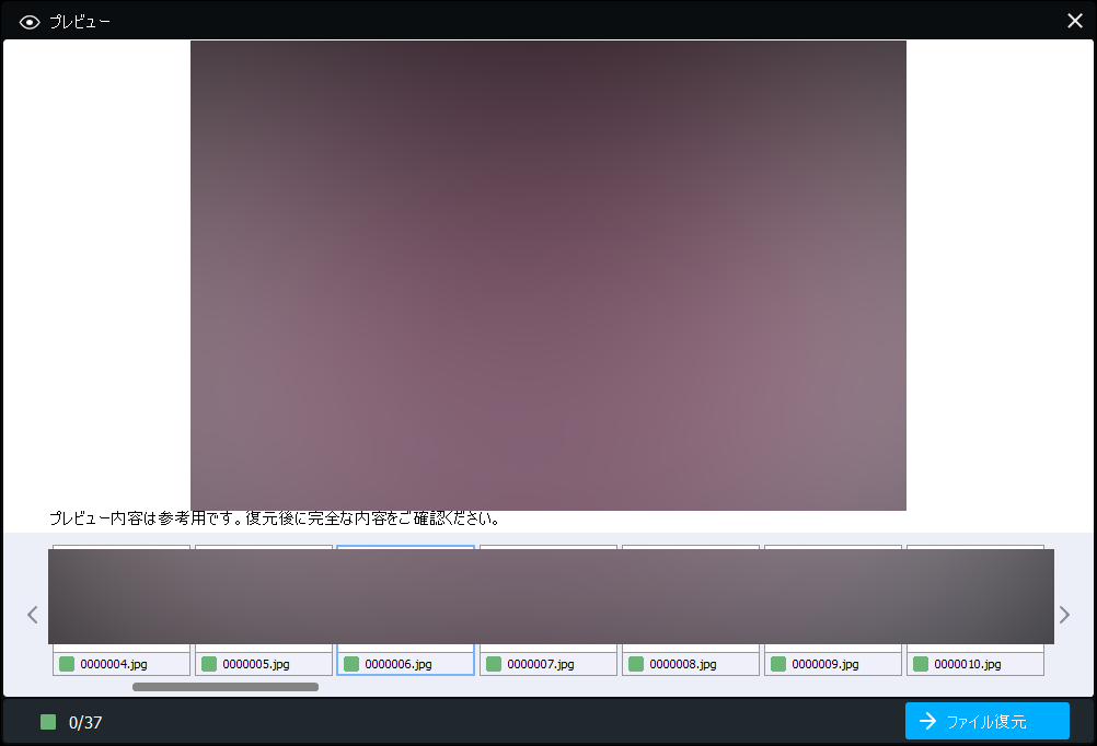 復元前にファイルの中身を確認できるため、