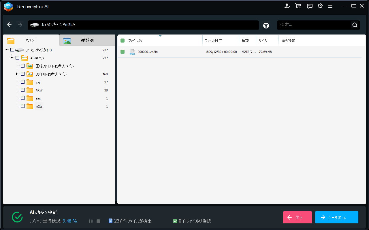 従来の復元ソフトとは異なり、AI(人工知能)による高度なスキャン技術を搭載しているのが特徴。