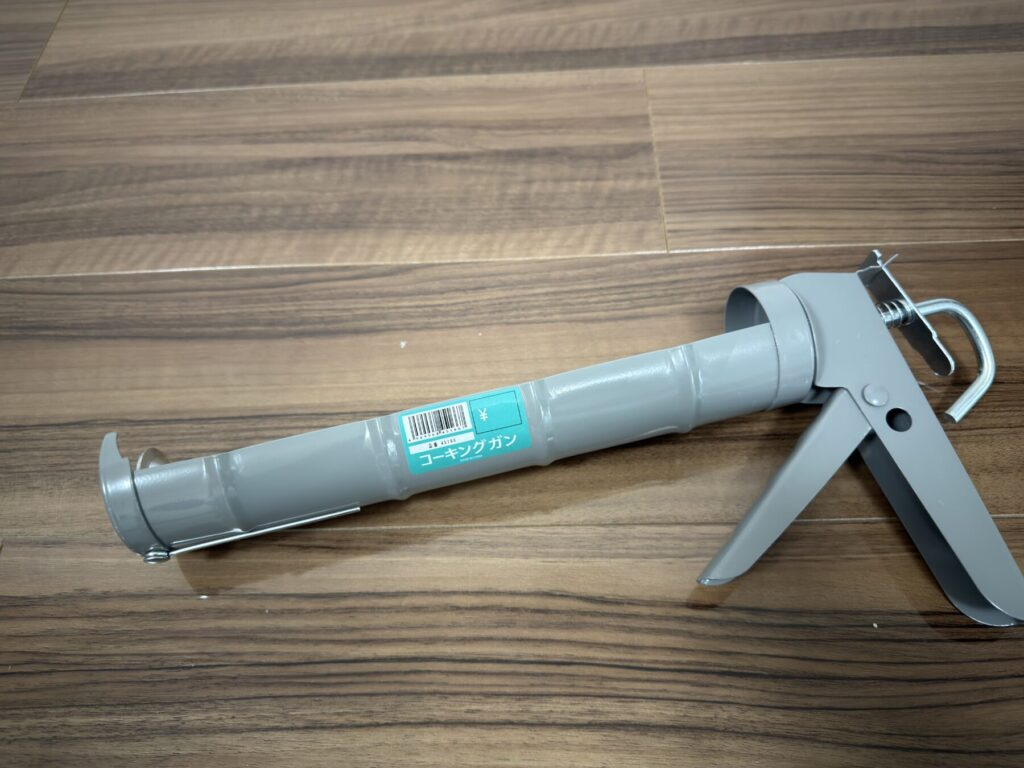 上のコーキング材を押し出すためのガン。