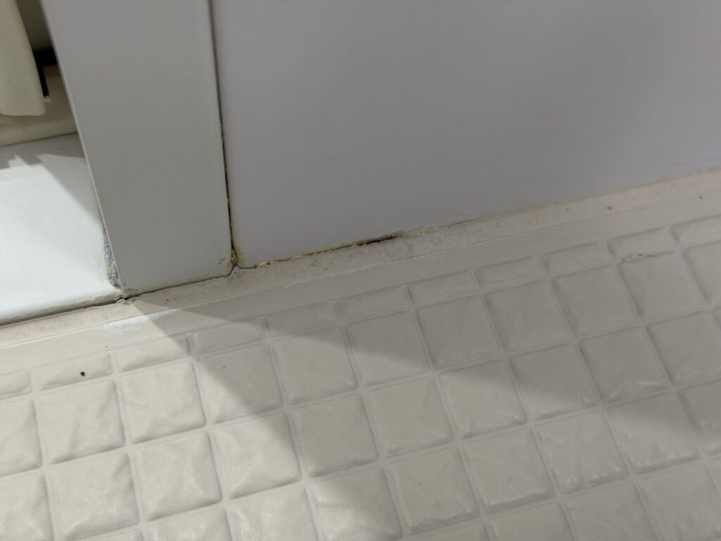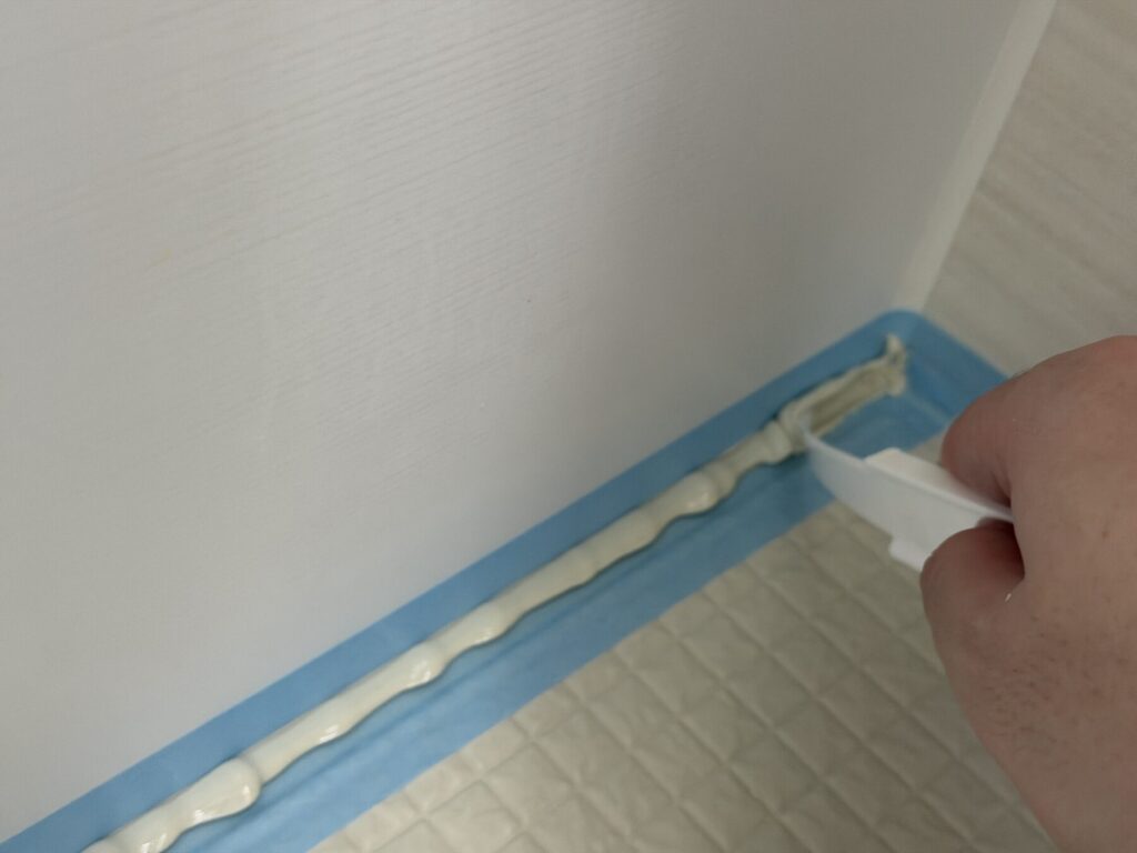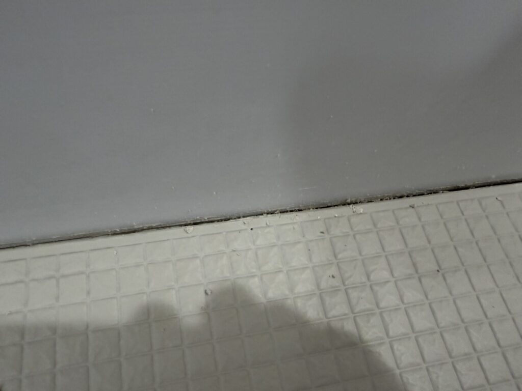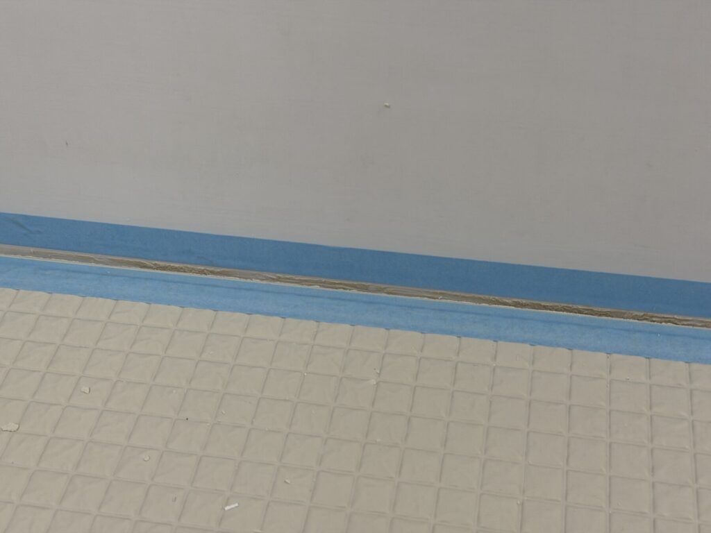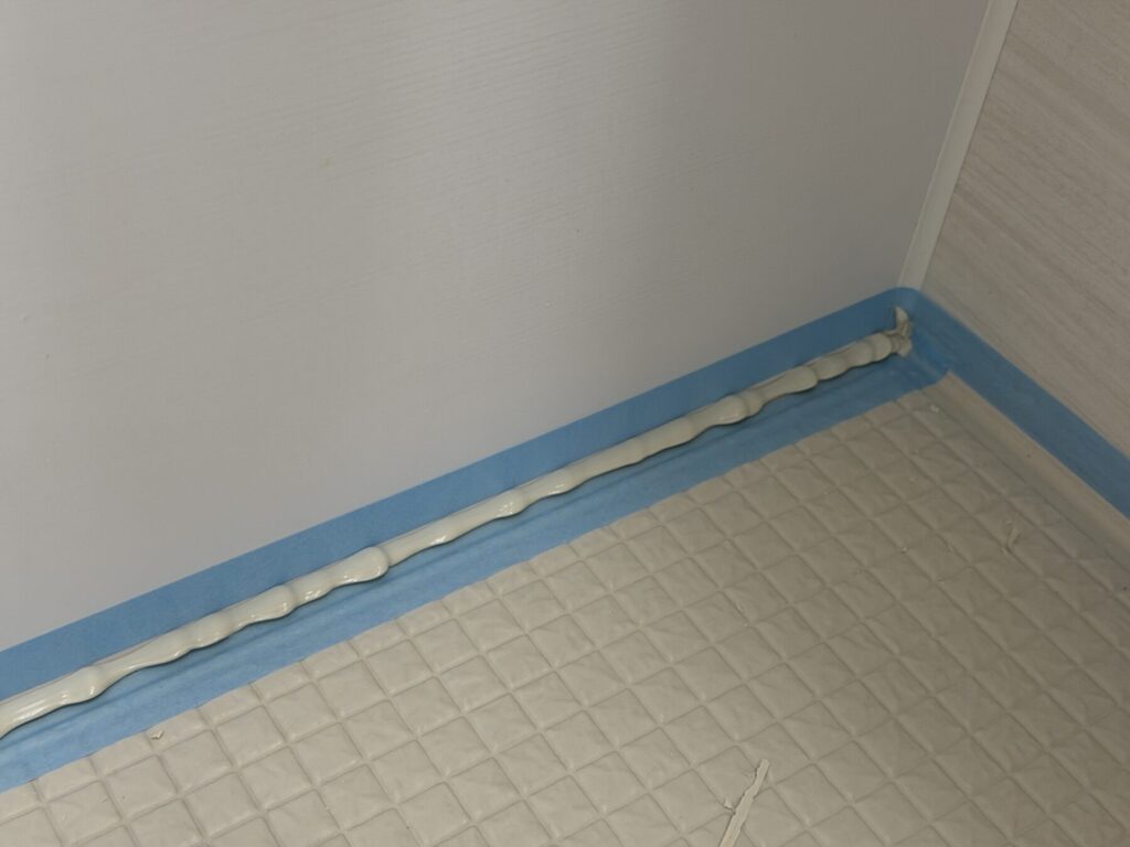 後で気づいたポイントとしては、このコーキング部分が床より低くなってしまったばあい、コーキングに水が溜まってしまう。