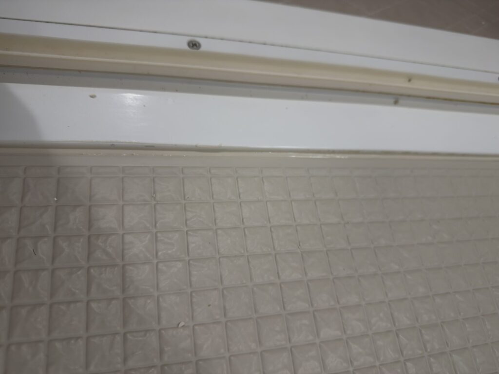 最初はカビなのかな~~と思って触ってみたら明らかにコーキングが切れていて、ここから水が入っていきそうでとてもイヤだ
