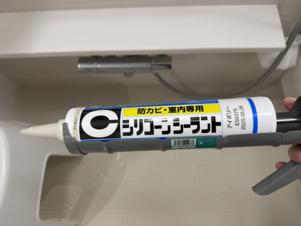 シリコーンシーラントをコーキングガンにセットして…
