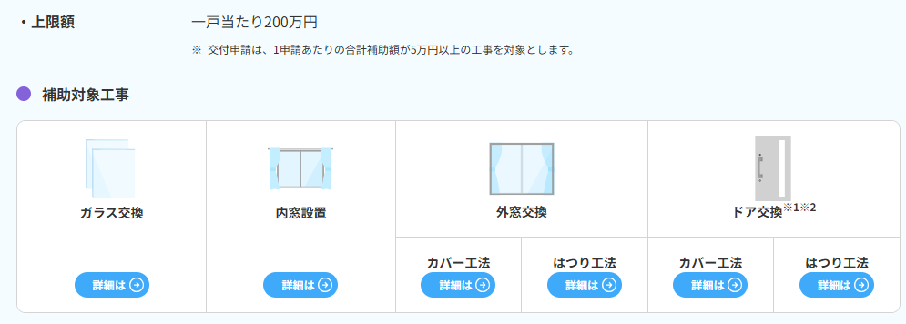 先進的窓リノベでは4種類の補助対象工事があります