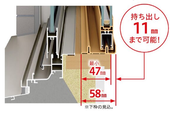 窓枠が従来70㎜必要なところ、47㎜あれば設置できる商品です
